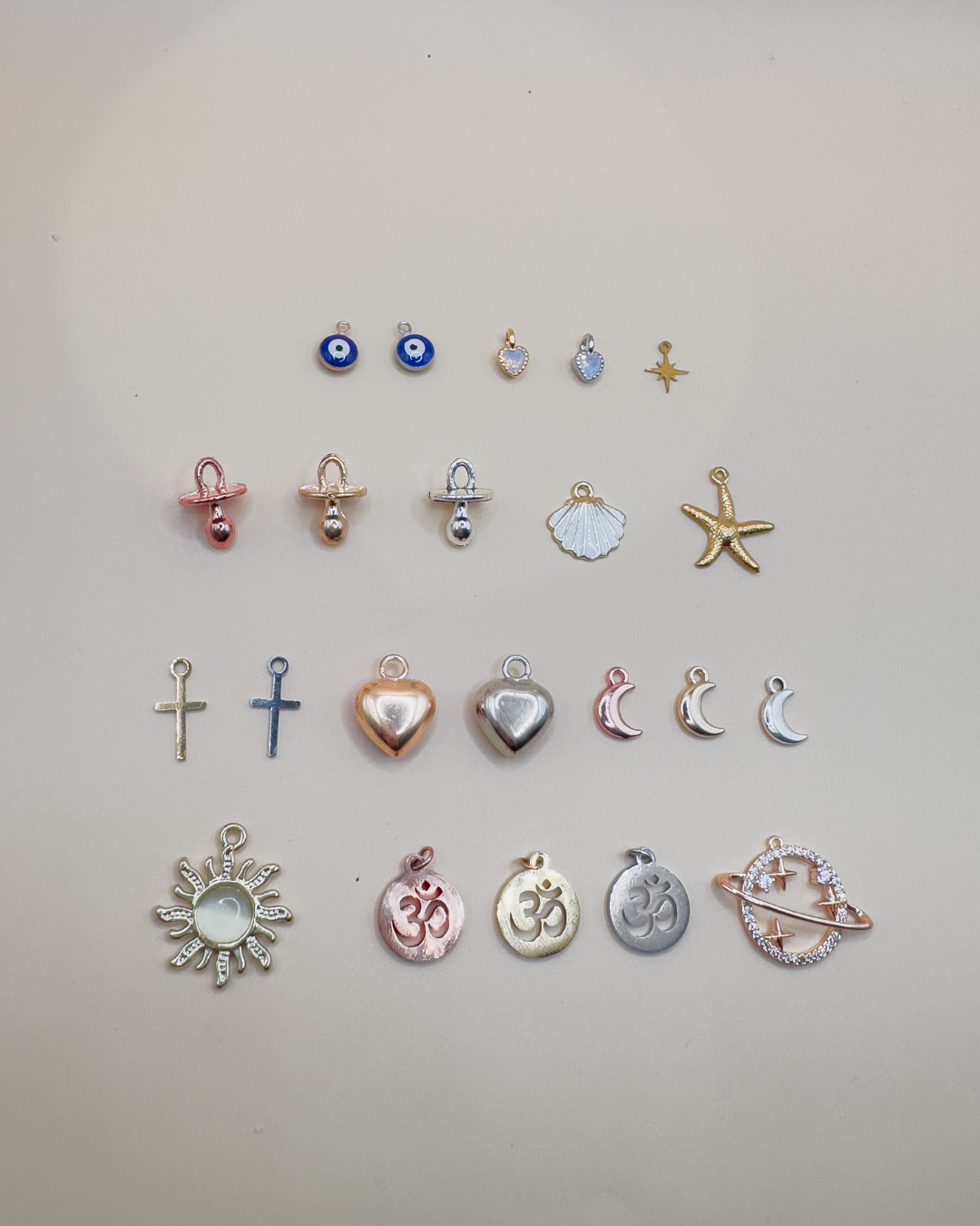 ✨ Un charm symbolique : cœur, lune, étoile, croix, soleil, fleurs…