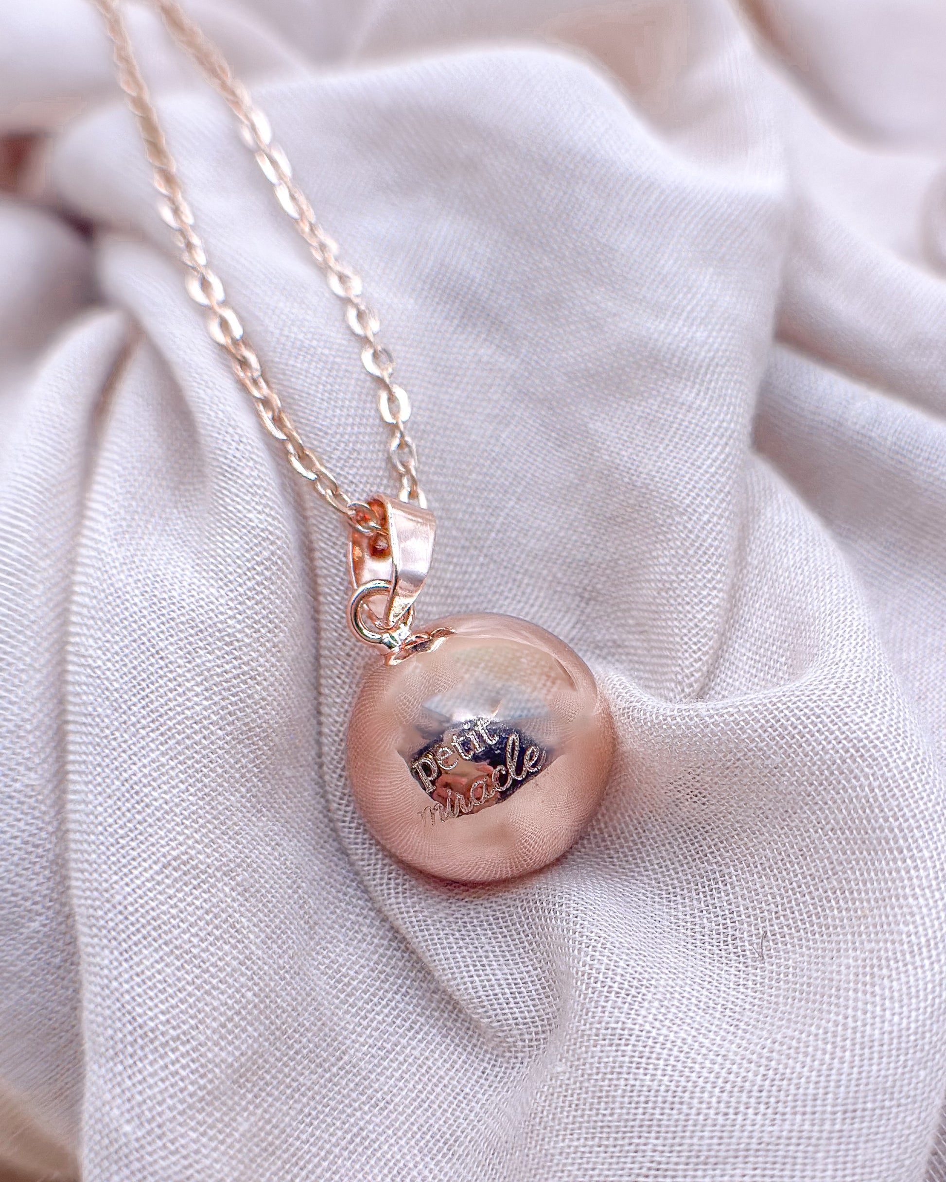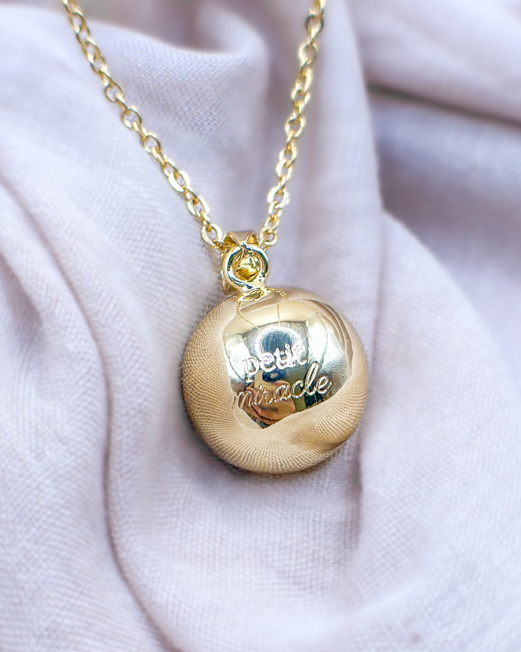 Notre bola Petit Miracle est un bijou de grossesse unique et gravé dans la masse.